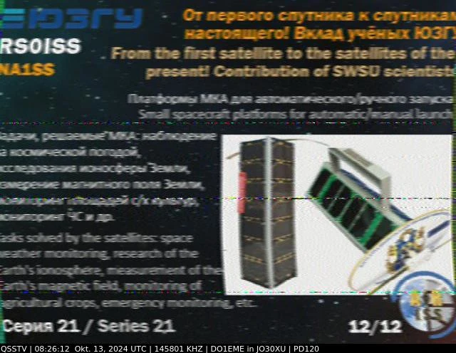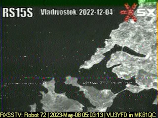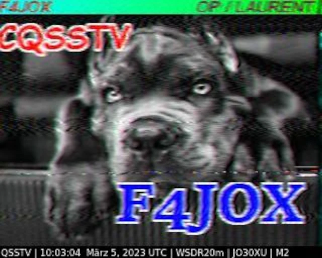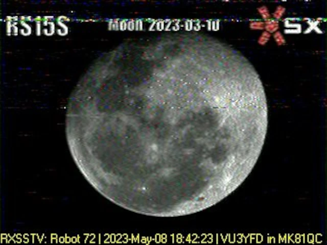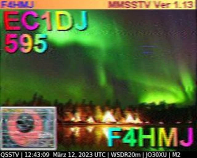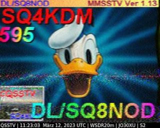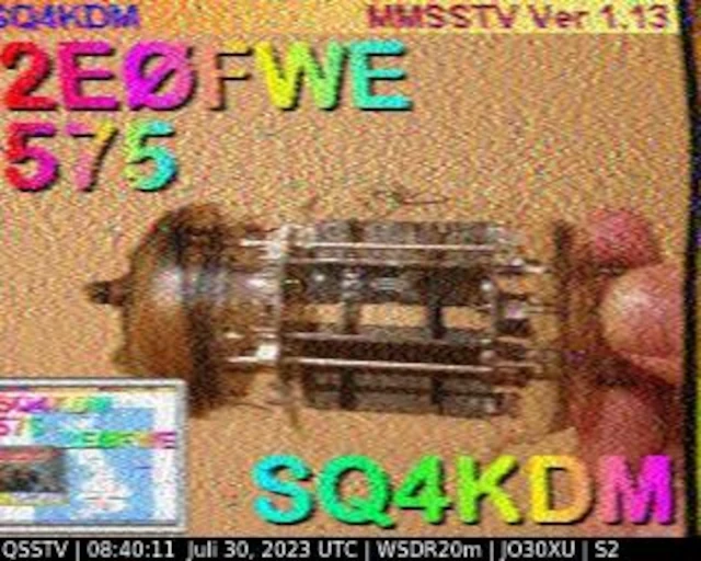 Setup- Transceiver: Baofeng UV-100, Antenne: UHF Quad Eigenbau, Software: RXSSTV, Audioaufnahme mit Mobiltelefon und anschließend auf Laptop übertragen.