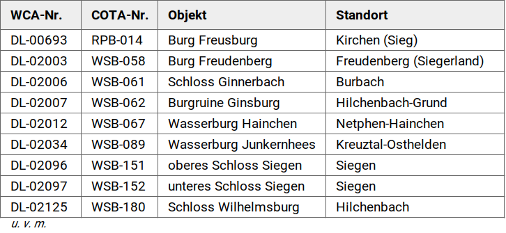 Aus der Region Siegerland stehen einige Standorte in der DL-WCA-Liste.