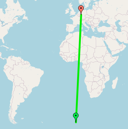 Entfernung DL-Bouvet ca. 11.700 km