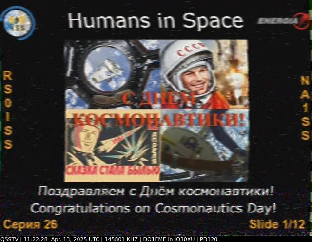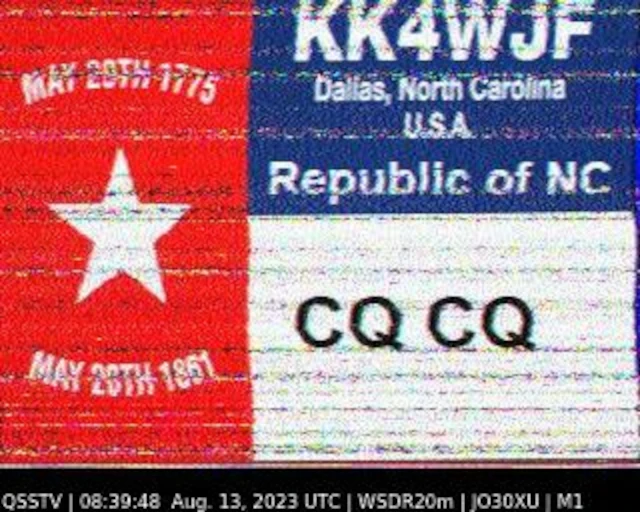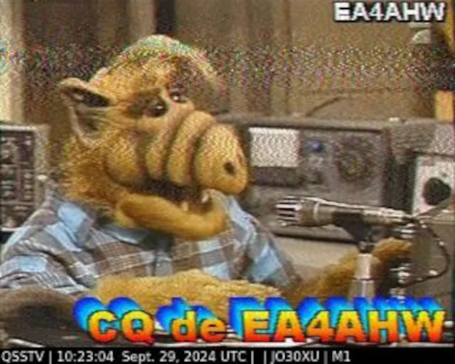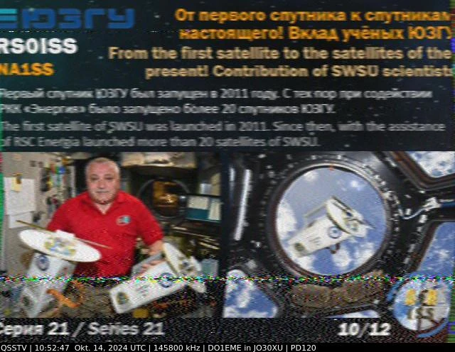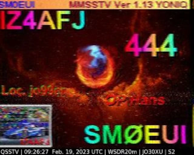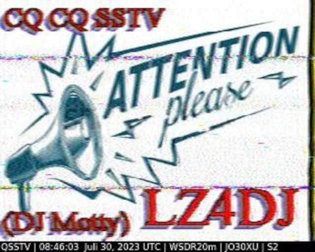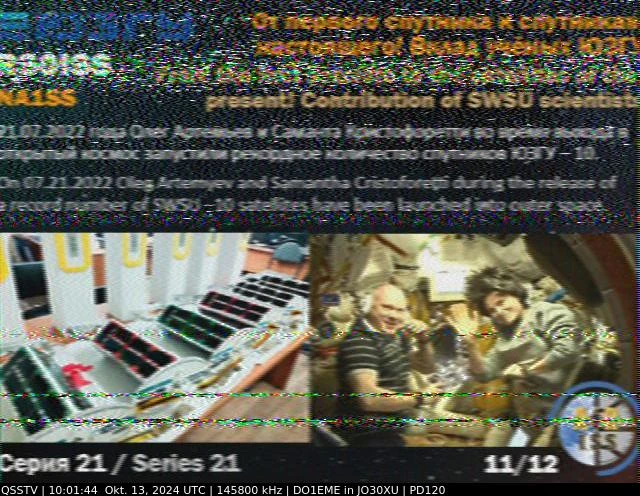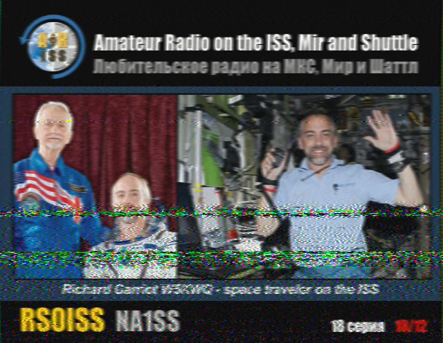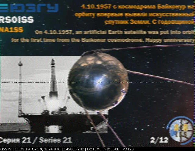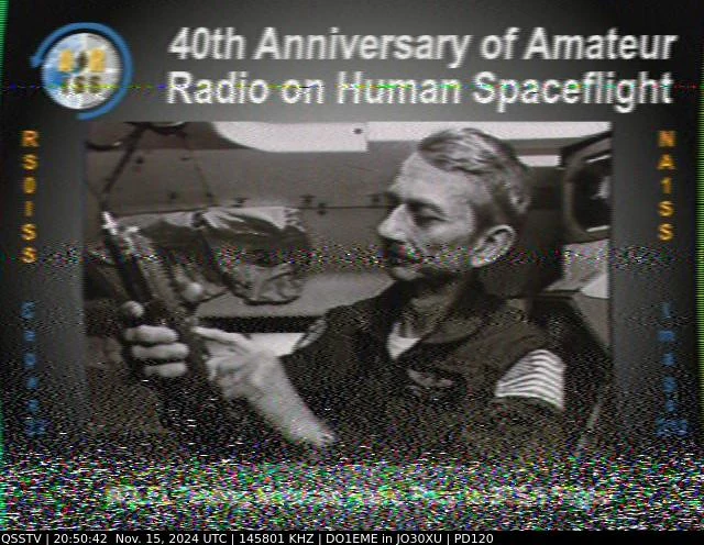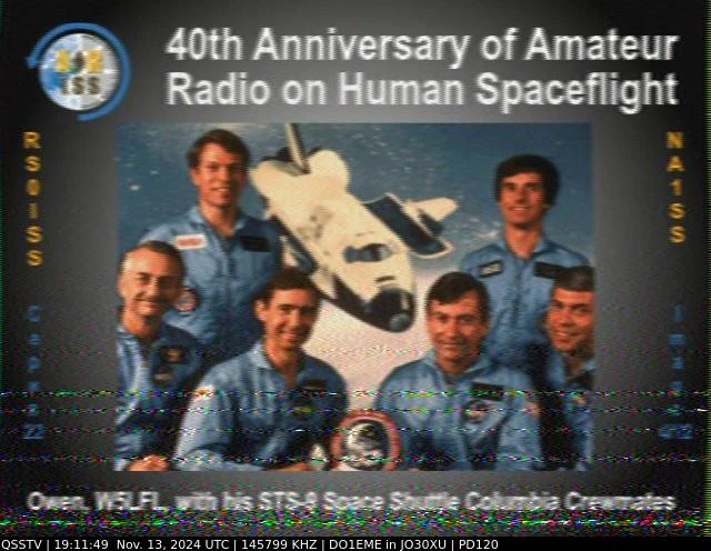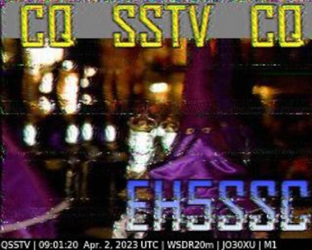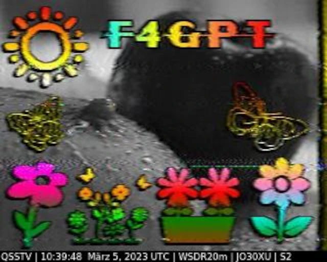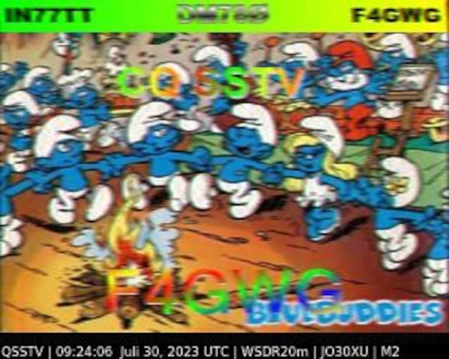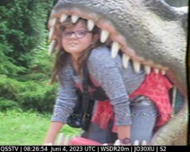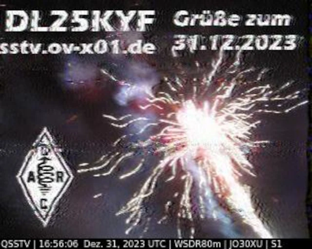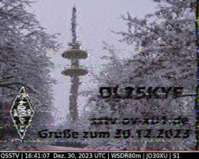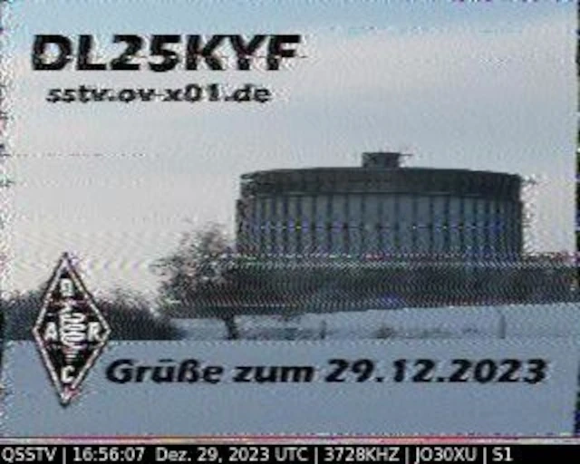 Setup- Transceiver: Baofeng UV-100, Antenne: UHF Quad Eigenbau, Software: RXSSTV, Audioaufnahme mit Mobiltelefon und anschließend auf Laptop übertragen.